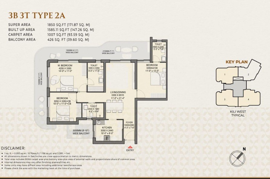 3 BHK Luxury Apartments: 1825 – 1850 sq.ft