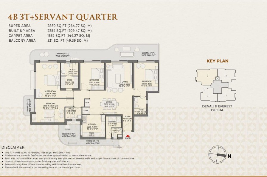 4 BHK + Servant Residences: 2850 sq.ft